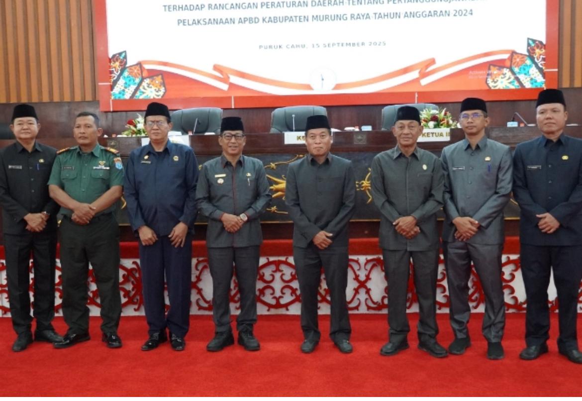 MURUNG RAYA, Mahardeka.com – Dewan Perwakilan Rakyat Daerah (DPRD) Kabupaten Murung Raya bersama Pemerintah Daerah melaksanakan Rapat Paripurna ke-3 Masa Sidang III Tahun 2025 di ruang utama DPRD, Senin (15/9/2025). Rapat ini fokus pada penandatanganan keputusan DPRD dan persetujuan bersama dengan Bupati terkait Rancangan Peraturan Daerah (Raperda) tentang pertanggungjawaban pelaksanaan Anggaran Pendapatan dan Belanja Daerah (APBD) Kabupaten Murung Raya Tahun Anggaran 2024.