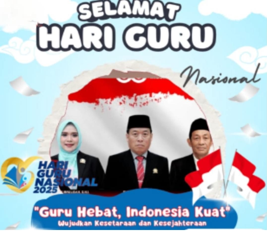 Murung Raya, Mahardeka.com – Ketua DPRD Kabupaten Murung Raya, Rumiadi, S.E., S.H., M.H., bersama jajaran pimpinan dan seluruh anggota DPRD Murung Raya menyampaikan ucapan selamat Hari Guru Nasional 2025 yang diperingati setiap 25 November. Selain itu, peringatan HGN 2025 mengusung tema nasional “Guru Hebat, Indonesia Kuat,” yang menegaskan peran guru sebagai motor penggerak pendidikan.