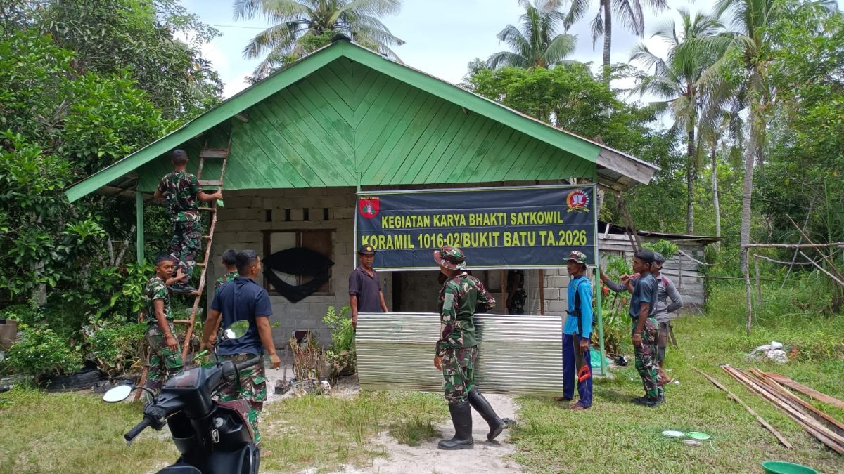 PALANGKA RAYA, Mahardeka.com – Babinsa Koramil 1016-02/Bukit Batu Kodim 1016/Palangka Raya, Serka Sugianto, memimpin kegiatan karya bhakti rehab rumah milik Slamet di Kelurahan Sei Gohong, Kecamatan Bukit Batu, Palangka Raya, Selasa (27/1/2026). Ia menggandeng anggota Yonif Teritorial Pembangunan 830/Isen Mulang serta warga sekitar untuk mempercepat proses perbaikan hunian tersebut.