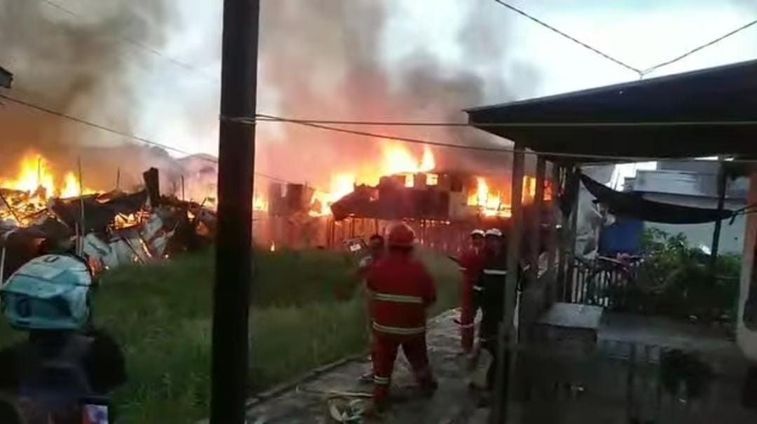 Kobaran api membesar dalam hitungan menit. ERP mencatat sedikitnya lebih dari tiga rumah hangus terbakar. Dantim Piket ERP, Muhammad Noor Islami, menyampaikan petugas masih menghitung total bangunan terdampak.