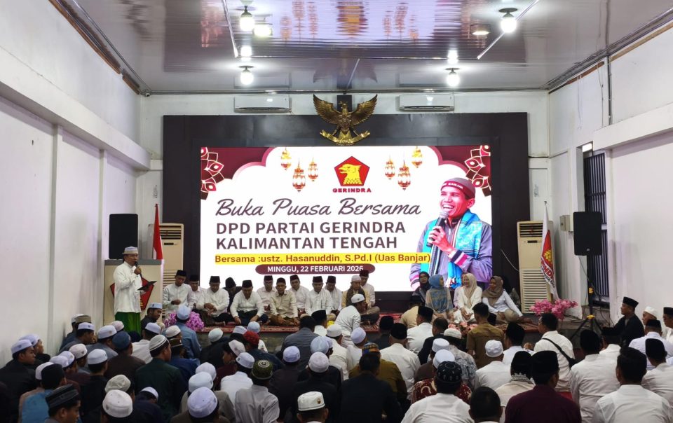 PALANGKA RAYA, Mahardeka.com — DPD Partai Gerindra Provinsi Kalimantan Tengah (Kalteng) menggelar buka puasa bersama dan membagikan ratusan paket sembako kepada masyarakat di Jalan Seth Adji, Kota Palangka Raya, Minggu (22/2/2026) sore. Kegiatan ini mempererat silaturahmi Ramadan sekaligus menyalurkan bantuan sosial bagi warga yang membutuhkan. Sejumlah tokoh hadir, termasuk Gubernur Agustiar Sabran dan Wakil Gubernur Edy Pratowo.